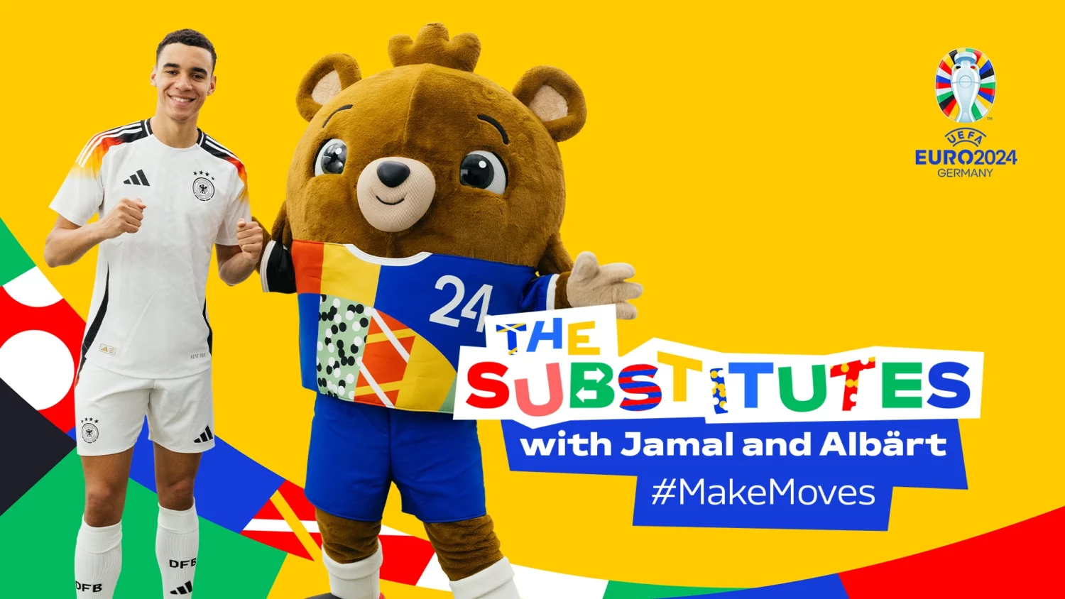 German international Jamal Musiala and official EURO 2024 mascot Albärt want to spark excitement and inspire kids across Europe to get active, love football, and embrace the values of the UEFA EURO 2024 in Germany.